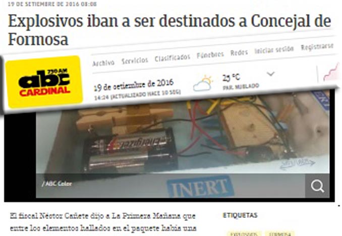 El Fiscal Néstor Cañete,dijo que el paquete que contenía dispositivos para la elaboración de una bomba -incautado el jueves en el aeropuerto Silvio Pettirossi- aparentemente debía ser entregado en la propia municipalidad de Formosa, Argentina.