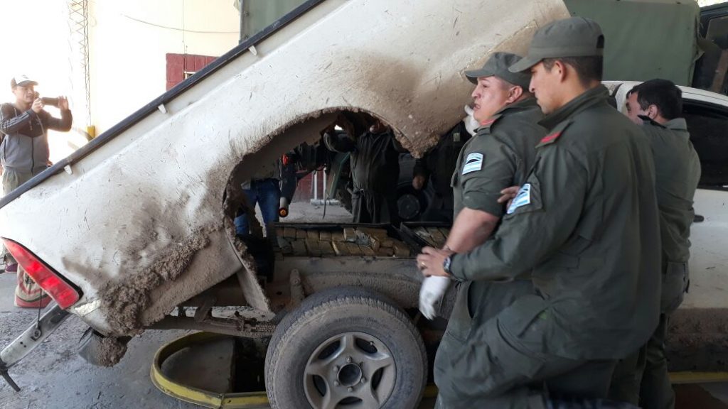 Se secuestraron 235 kilos de marihuana, distribuídos en 273 paquetes que estaban disimulados debajo de la caja de una camioneta, que también quedó a disposición del juez federal subrogante Juan Carlos Vallejos.