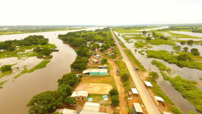 Acceso a Puerto Pilcomayo inundado, circular con precuación