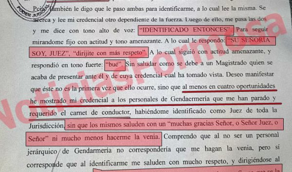 Juez pide que los gendarmes le hagan la venia y le digan: «Su señoría, señor juez»