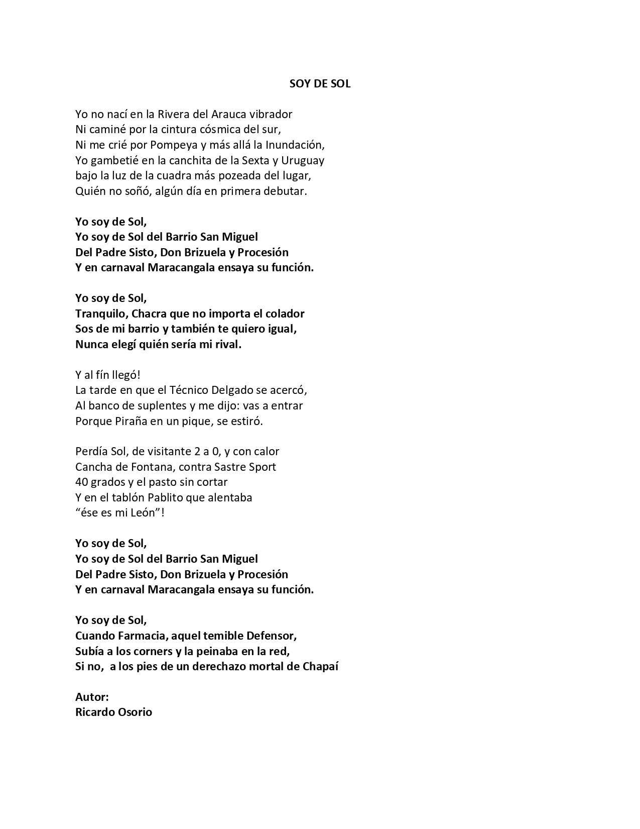 Ricardo Osorio hace más de tres décadas que dejó el barrio San Miguel para irse a vivir en los Estados Unidos. Se afincó en la ciudad de Los Ángeles, California; y desde ahí grabó un mensaje enviando un saludo y abrazo a toda la afición solense, y al presidente del club Darío Di Martino.
