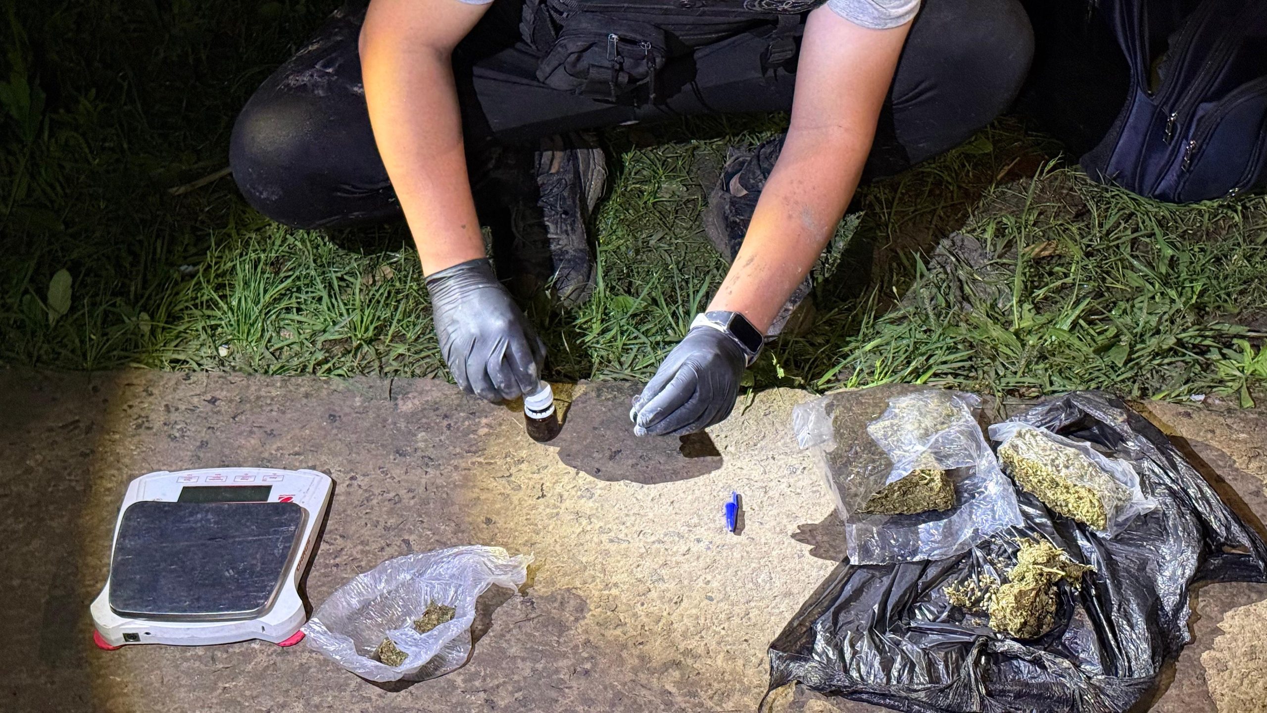 Al intentar identificarlos, los ocupantes de la moto de menor porte abandonaron el rodado y durante la huida arrojaron varios envoltorios con marihuana.