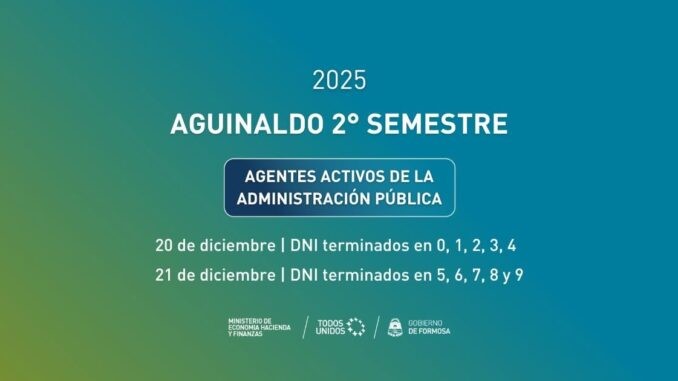 El Gobierno de la provincia de Formosa informó que a partir del sábado 20 se dará inicio al pago del Sueldo Anual Complementario (SAC) del segundo semestre, a los agentes de la Administración Pública Provincial.