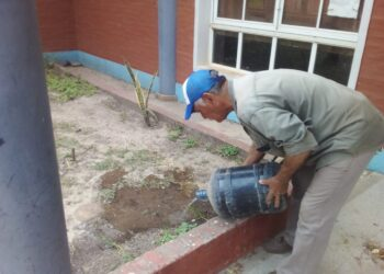 Cáceres señaló además que, cuando los recipientes se utilizan para almacenar agua y no es posible taparlos de manera segura, es fundamental aplicar el larvicida que entregan gratuitamente los brigadistas sanitarios durante las visitas domiciliarias. Remarcó que este producto actúa sobre las larvas del mosquito e impide que se desarrollen, por lo que su uso correcto complementa el descacharrizado y el control diario de los recipientes.