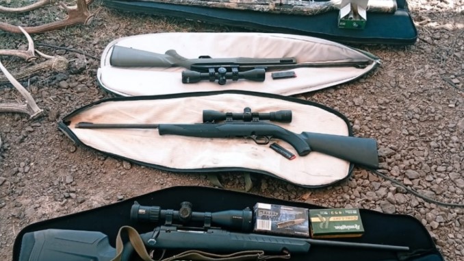Durante la inspección se constató que transportaban armas de fuego y municiones, entre ellas una carabina calibre 308 con proyectiles, una escopeta, dos rifles calibre 22 y cartuchos de diferentes calibres.