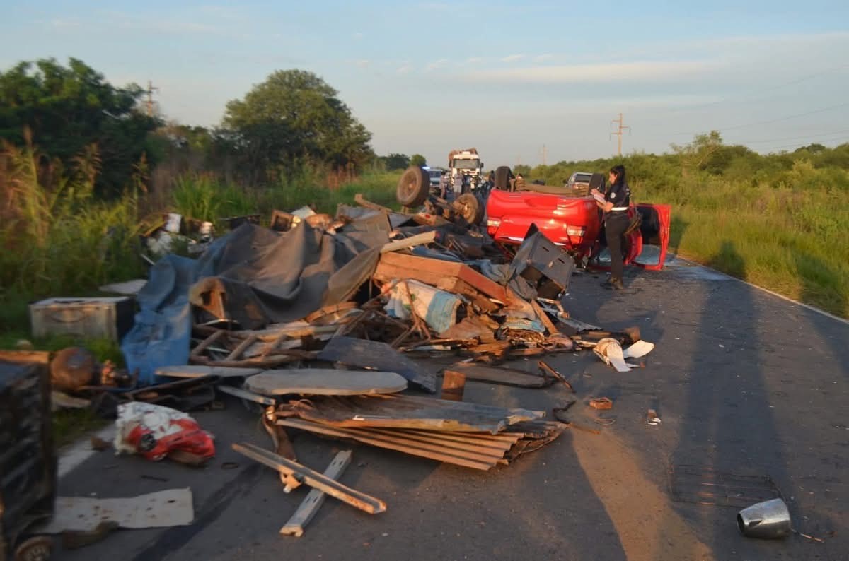 Por causas que aún son materia de investigación pericial, ambos vehículos impactaron sobre la traza nacional, quedando el automóvil con daños de extrema consideración en su estructura.