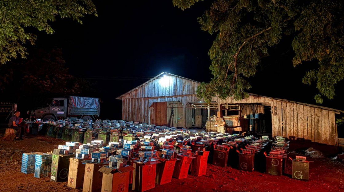 Con el apoyo de patrullas cercanas, se iniciaron tareas de rastrillaje, durante las cuales observaron a dos ciudadanos descargando cajas de cartón a un galpón, quienes huyeron al percatarse de la presencia del personal de la Fuerza.