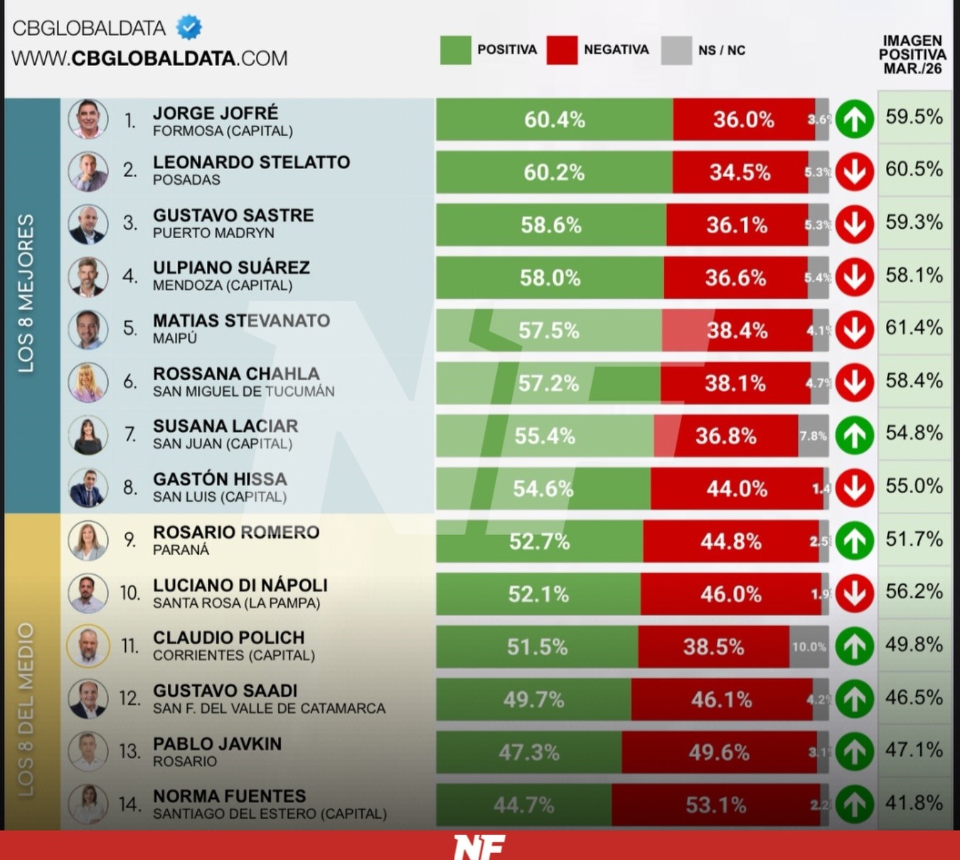 Un estudio de la consultora CB Global Data realizado en la ciudad de Formosa revela una alta valoración del intendente Jorge Jofré, quien alcanza un 60,4% de imagen positiva.