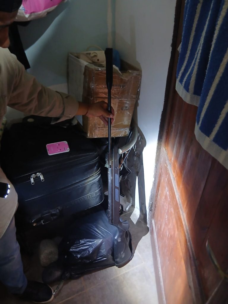 En el lugar, uno de los imputados intentó resistirse y empuñó un rifle, pero a través de técnicas de mediación se calmó y se ingresó al domicilio, procediéndose a la detención de los tres involucrados.