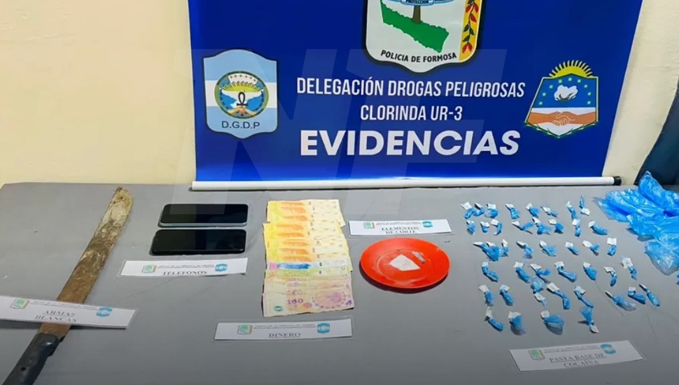 En el lugar, además de las dosis de cocaína, se secuestraron un plato y una gillette con restos de la sustancia, $10.000 en efectivo, dos teléfonos celulares, un machete y recortes de nylon utilizados para el fraccionamiento.