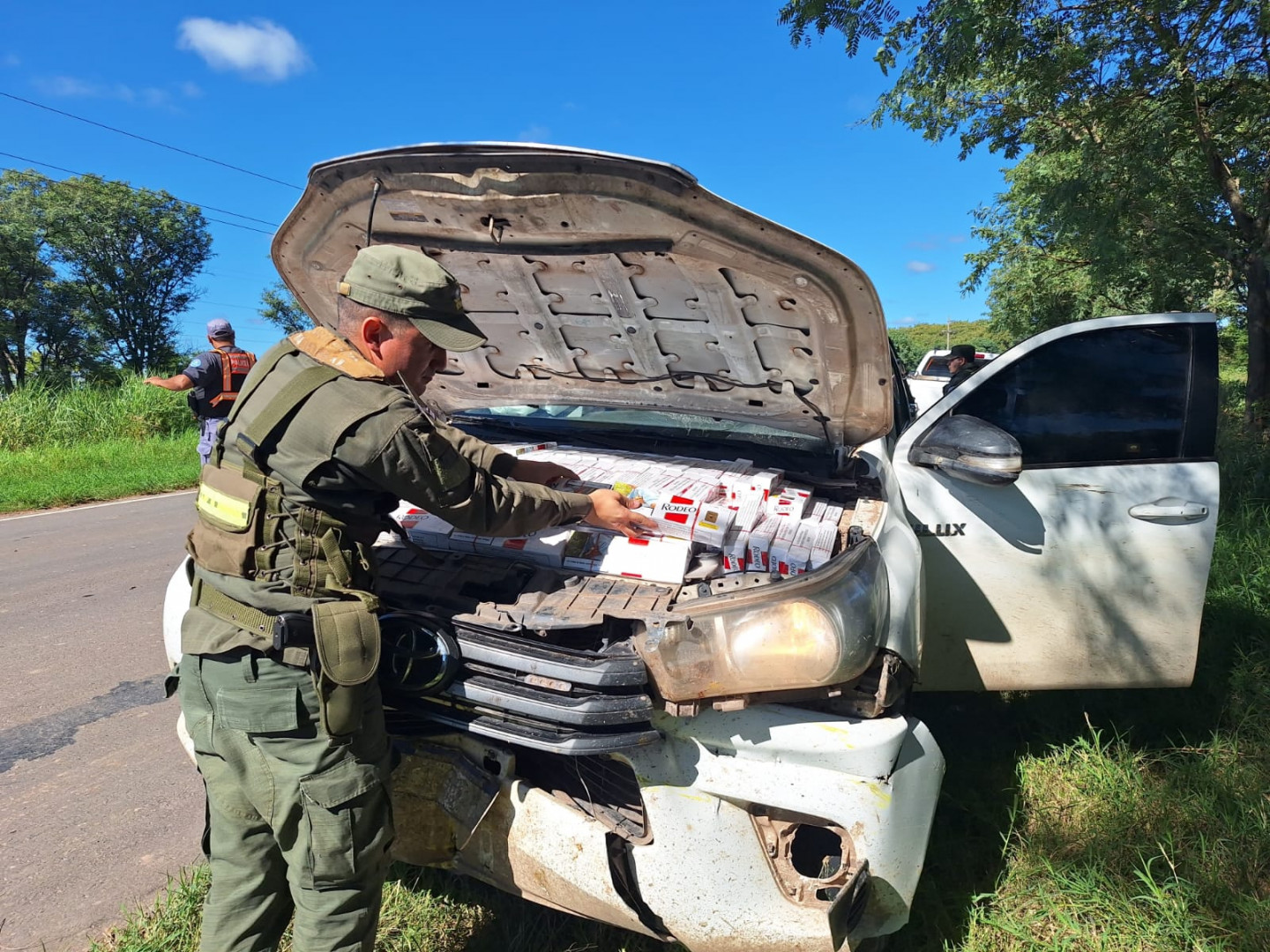 Una vez asegurada la zona los uniformados y, en presencia de testigos, inspeccionaron el rodado constatando la existencia de varios cartones de cigarrillos de origen extranjero distribuidos en el motor, habitáculo y el compartimiento de carga. Un total de 25.530 atados, que carecían de aval legal.