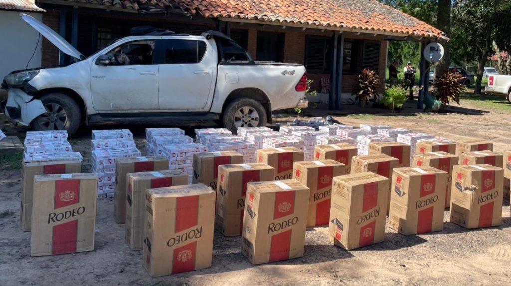 La mercadería de contrabando era trasladada en una camioneta que tenía solicitud de secuestro por robo. El conductor, al encontrarse con el puesto de control de la fuerza sobre la Ruta Provincial N° 1, realizó maniobras evasivas dándose a la fuga siendo aprehendido a escasos metros luego de un seguimiento controlado. El avalúo de lo secuestrado asciende a 56.934.453 pesos.