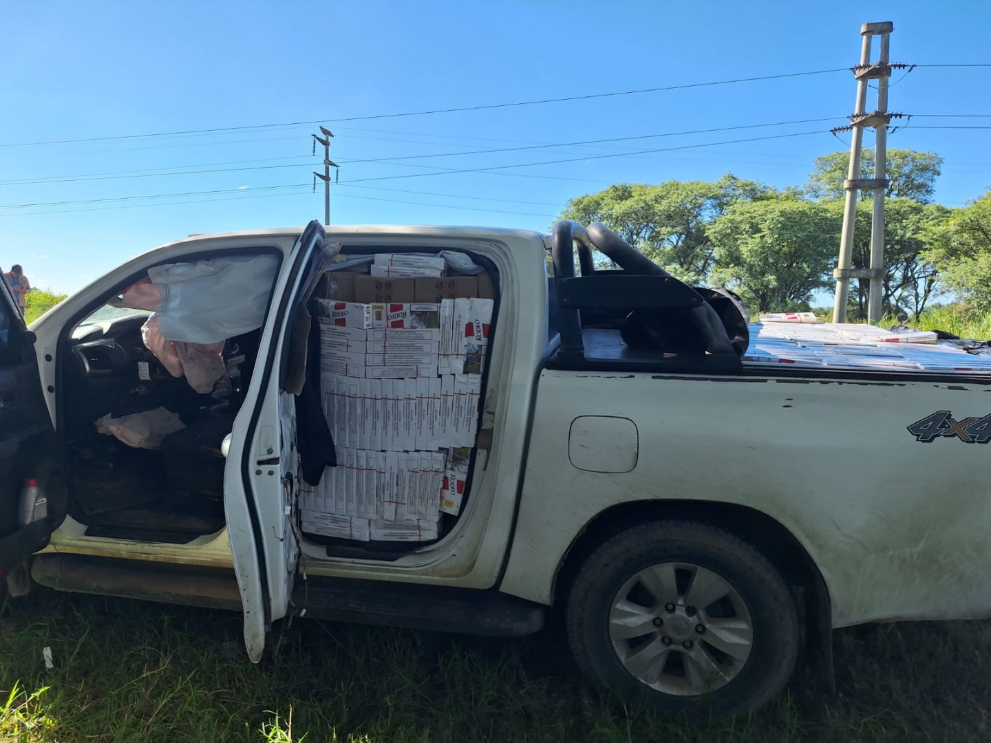 Asimismo, personal de la Fuerza mediante pedido de antecedentes confirmó que la camioneta utilizada para el traslado de la mercadería de contrabando tenía solicitud de secuestro por robo.