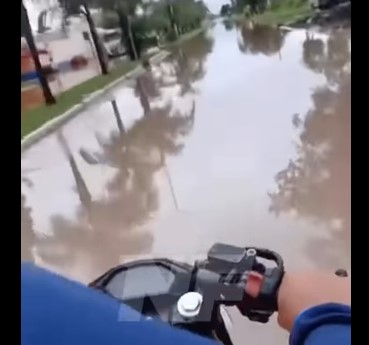 Vecinos registraron en video el momento en que cruzaban en moto una de las avenidas principales, completamente cubierta por el agua.