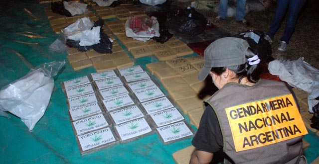 El comandante Juan Ángel Díaz, jefe del Escuadrón formoseño, destacó que en total se secuestraron alrededor de 2.500 kilos de marihuana, en panes etiquetados con la tradicional imagen de la hoja de esa droga y la leyenda «Puro Pinito – Capitan Bado – Paraguay».