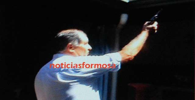 En la foto se observa a Oscar Reniero explicando/recreando cómo redujo al malviviente en el techo de su casa. Cuando el vecino justiciero habló con NoticiasFormosa, 5 horas después de hecho, aún no le habían secuestrado el arma ni realizó declaración testimonial ante la justicia.