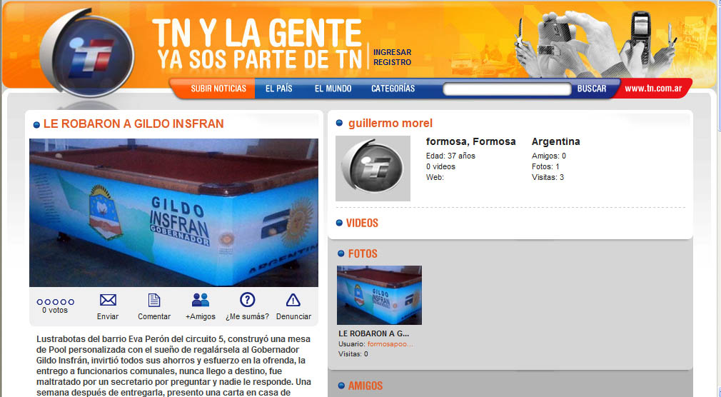 Sin utilizar el recurso del “anonimato”, puso “su” mail y nombre real con el título “Le robaron a Gildo Insfrán.
