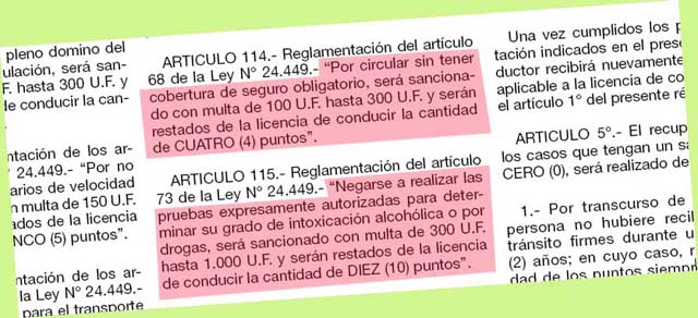 La negativa al alcotest, y circular sin seguro obligatoria deriva en sanción económica y pérdida de puntos para la «nuevo» sistema de «scoring» para licencias de conducir. (Fuente: Boletín Oficial de la Nación)