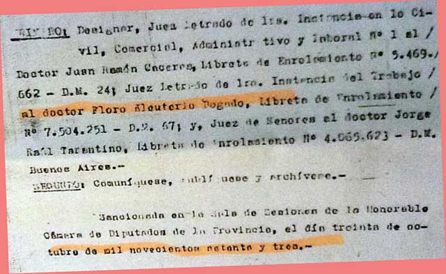 Vale recordaren esta fecha de quienes aún no han sido reivindicados moralmente, tal es el caso del vocegobernador Floro Bogado, quién desde 1.973 ejerció como juez letrado de Primera Instancia en lo Civil, Comercial y Administrativo en nuestra provincia.