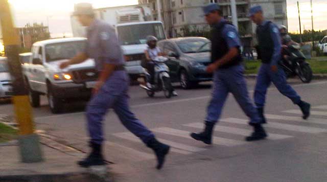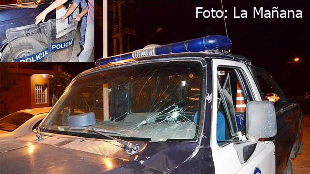 Asimismo, producto de la agresión sufrieron lesiones en el rostro y distintas parte del cuerpo dos efectivos policiales, quienes fueron victimas de los escombros arrojados por los inadaptados, tambien fue dañado un móvil policial constatándose abolladura en distinta parte del vehiculo y rajadura en el parabrisa lado izquierdo producto de los piedrazos recibidos.
