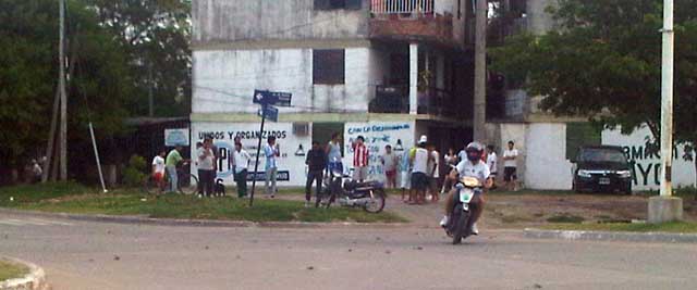 Por otro sector, los simpatizantes del Club Patria que se retiraron por la Avenida Antártida Argentina (alrededor de 80 personas), previéndose en el despliegue cuatro móviles: el Móvil 117 con 06 efectivos, el móvil 613 carro de asalto con diez efectivos, y los móviles de la Subcomisaría Guadalupe y Coluccio, los aficionados siguieron por calle Corrientes ingresaron al barrio Guadalupe y en el sector del Mercado Frutihortícola, sin motivo alguno reaccionan violentamente contra los efectivos policiales que acompañaban a los mismos arrojando todo tipo de escombro, piedras utilizando gomeras.